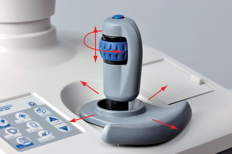 The chin rest can be moved by pushing the buttons on the front panel. No need to reach out to the chin rest for manual adjustment.
