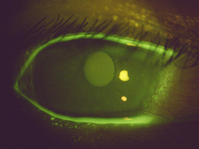 Using it together with the blue filter installed in TAKAGI slit lamps enables high-contrast images to be taken.