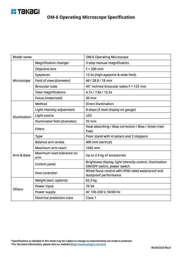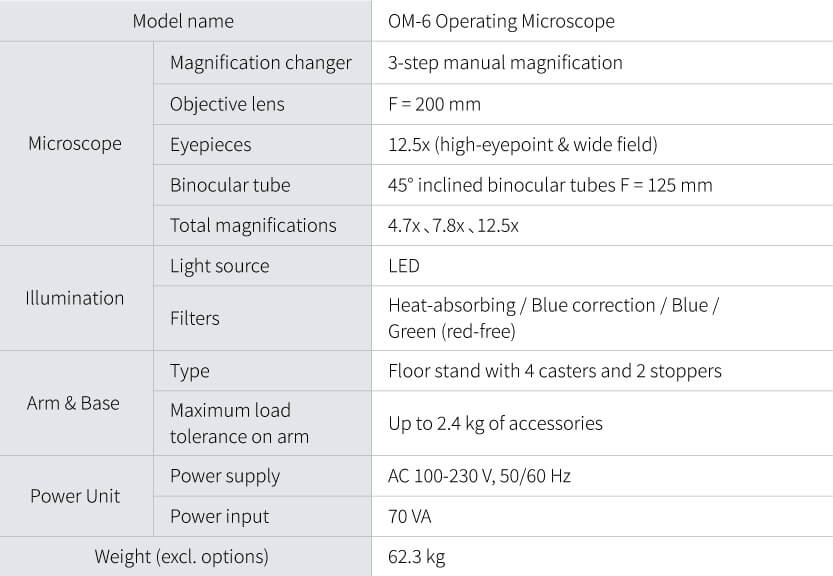 *LED operating life is defined as a state when light intensity drops to 70%. The operating life of the LED used in OM-6 is approximately 40,000 hours, although this is not guaranteed.