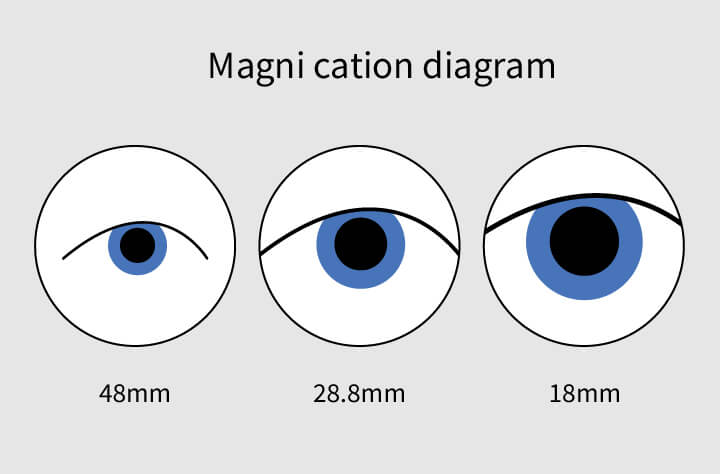 The combination of a three-step magnification system and wide-field eyepieces allows selection of actual fields of view with diameters of 48 mm, 28.8 mm, and 18 mm. The design makes it easy to secure a wide field of view, making it ideal for procedures or surgeries where comprehensive awareness of the entire visual field is required.