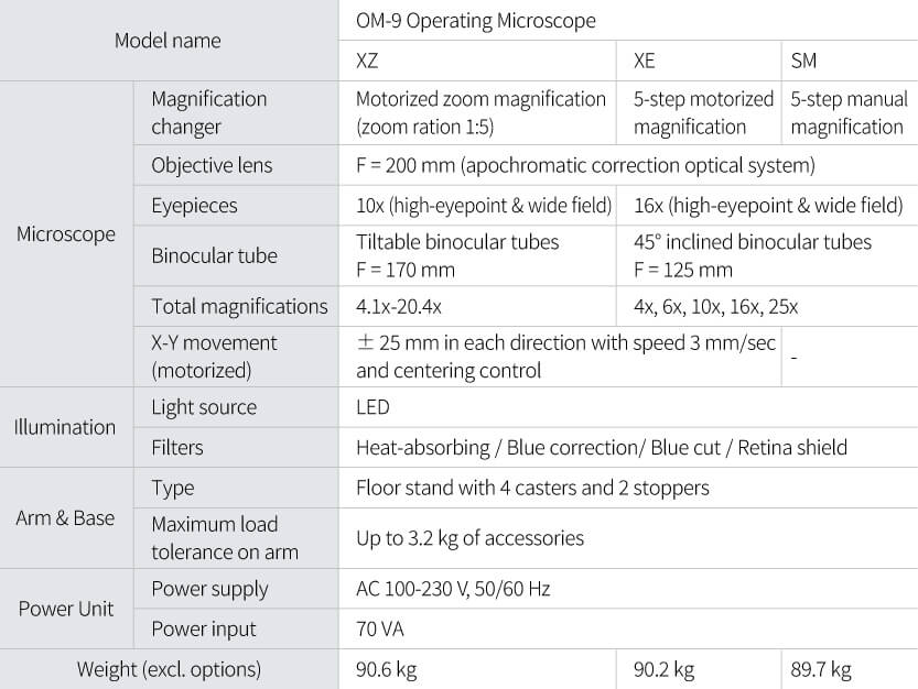 Entry-level operating microscope suitable for anterior and periphery procedures. LED light source without changing a light bulb. Compact size microscope but high optical performance.