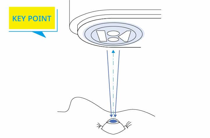 The system is equipped with a red reflex illumination mechanism using a high-intensity LED so that when red reflex illumination is turned ON, it switches to a structure where light is emitted from two mirrors. This makes it easier to obtain reflected light from the fundus, enabling red reflex observation required for cataract surgery and similar procedures.