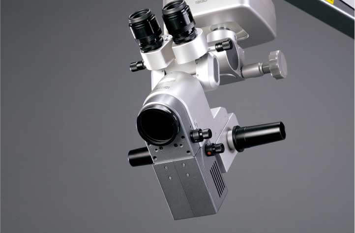 This enables smooth switching of the surgical field and adjustment of the magnification during surgery without interrupting the workflow, allowing full concentration. This configuration provides a balance of comfort and operability.