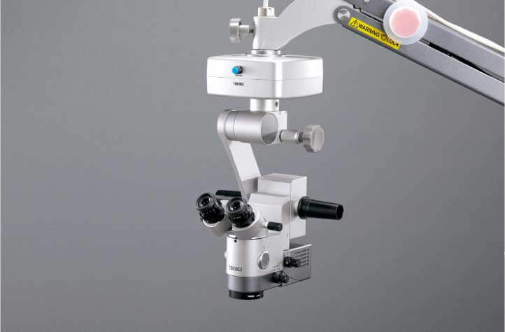 The world's first operating microscope with independent light intensity adjustment for coaxial and red-reflex illumination. With X-Y coupling, zoom magnification, tiltable eyepieces and rotating coaxial stereoscopic assistant microscope. Suitable for anterior and posterior surgical procedures.