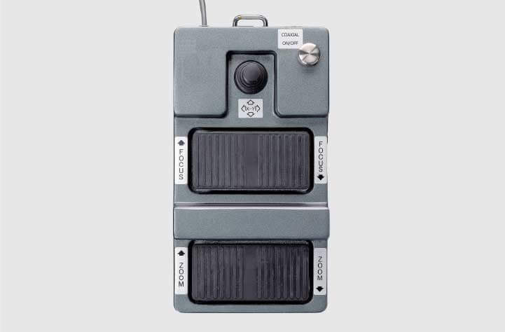 In all microscope configurations, the foot controller can be used for ON/OFF control of illumination and focus adjustment. In the XZ and XE Configurations, the foot controller also supports magnification switching and X-Y movement. Furthermore, the pedal layout for focus and magnification adjustment can be customized to match the surgeon’s preference for enhanced operability.