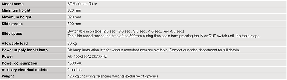 Considering the safest and most ideal conditions for using a slit lamp, it is best if the slit lamp is floating in the air and free of interference from the table. In order to get as close as possible to that state, we have developed a slide mechanism that does not attach to the table. As a result, the tabletop of this ultimate smart table is so thin that it feels like there is nothing between the patient and the user other than the slit lamp.
