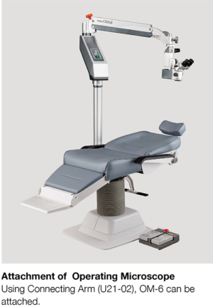 In combination with an operating microscope, the chair can be served as a bed for examination and treatment.