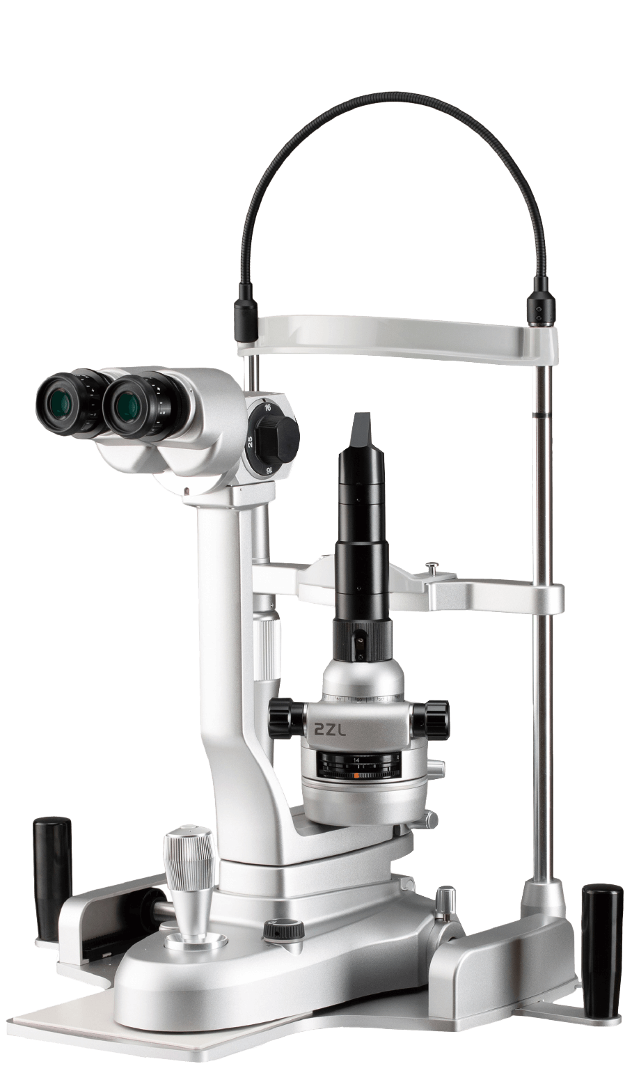 The slit illumination dimming knob and background illumination dimming knob, positioned around the joystick, are thoughtfully designed for comfort in size and tactile feel. Their intuitive one-handed operation allows adjustments while looking through the microscope. Additionally, the trigger button on top of the joystick enables image capture without releasing the joystick.