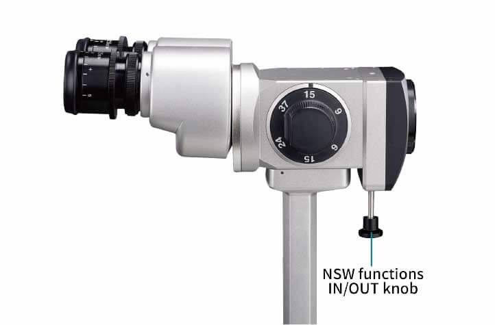 In contrast to the 10° stereo angle of the 700GL, an angle of 4.1° is adopted for the NSW, ensuring a wider stereoscopic vision area. This makes it easier to observe the fundus in detail for highly accurate diagnosis.