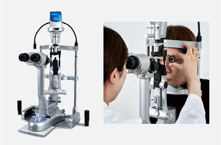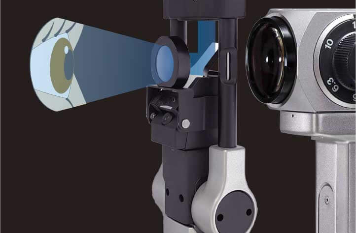 The inter-optical path distance of 22 mm and the sharp slit illumination that uses a high-luminance LED with a 3500 K color temperature produce a clear observation image with a stereoscopic sense from the anterior eye parts to the fundus. Lesions and foreign matter can be identified clearly and in detail, supporting more accurate diagnosis.