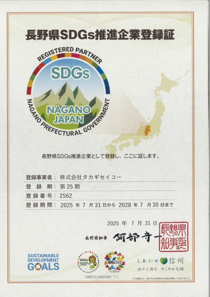 当社は、2025年7月31日付で「長野県SDGs推進企業」に登録されました。