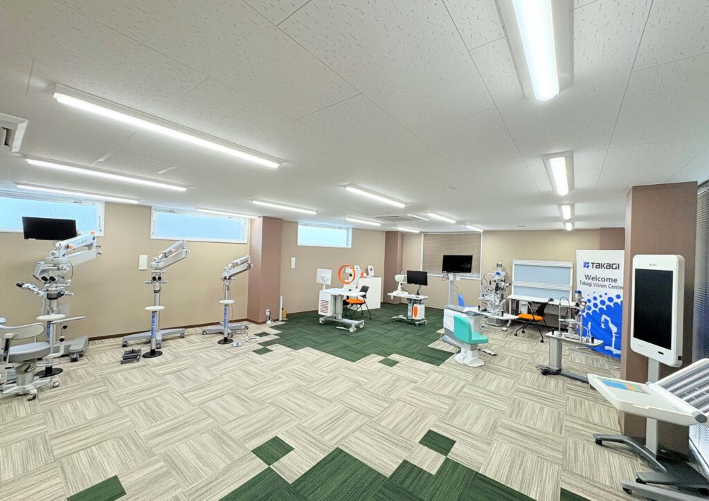 本ショールームでは、「スリットランプ」や「手術顕微鏡」「視力検査装置」「スマートテーブル」などTAKAGIの主力製品をご覧いただけます。
