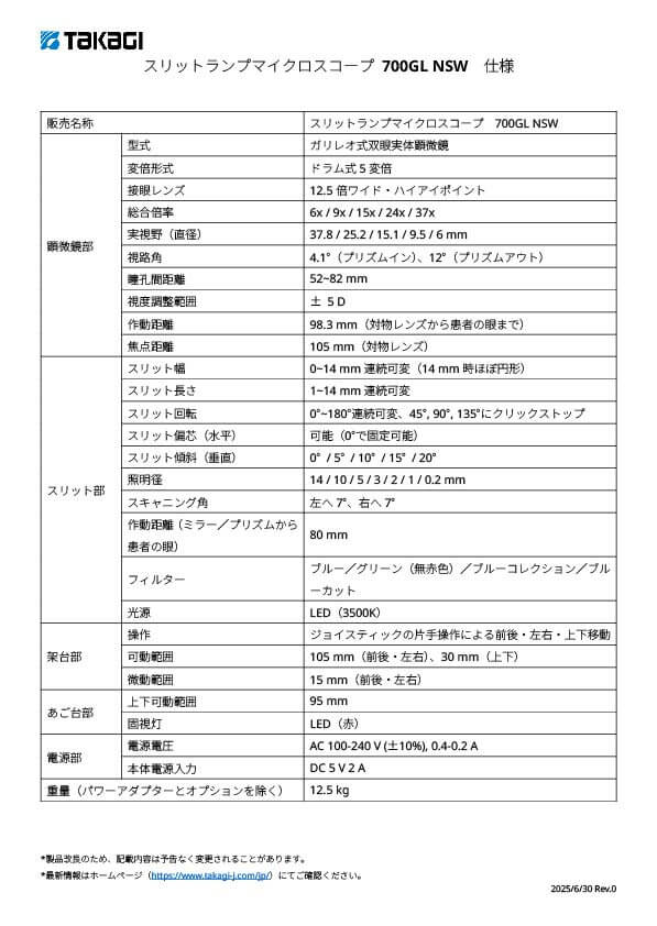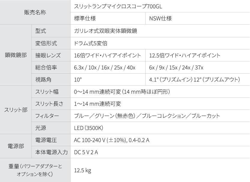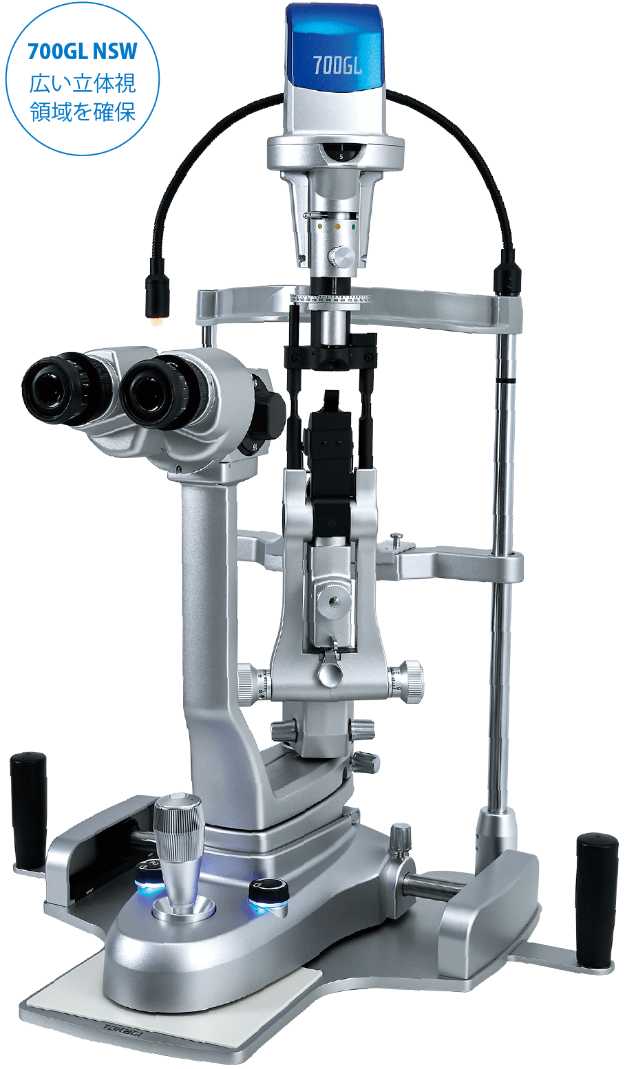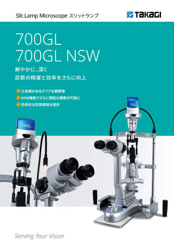 前眼部から眼底までの明瞭な観察を可能にするためにLED光源とのバランスを最適化したプレミアム光学系の700GLは、光と色のムラを抑えたシャープで鮮明なスリット光を提供します。光学設計の粋を結集し人間工学を融合させることで、ケーブル内蔵(特許取得)の美しいフォルムと使いやすさの両立を実現しました。より詳細な眼底観察ができる、NSW(広角眼底観察装置)モデルもご用意しています。