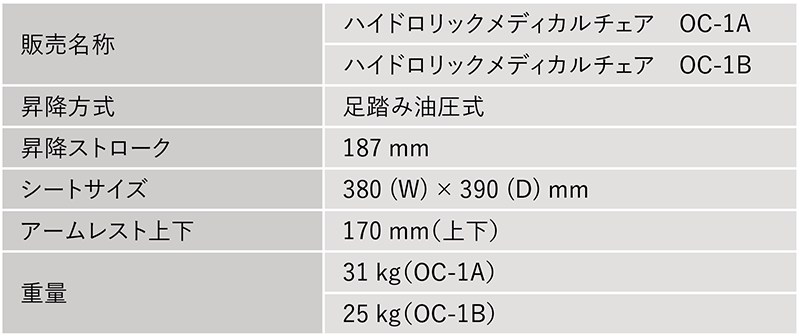 OC-1A/OC-1B ハイドロリックメディカルチェア